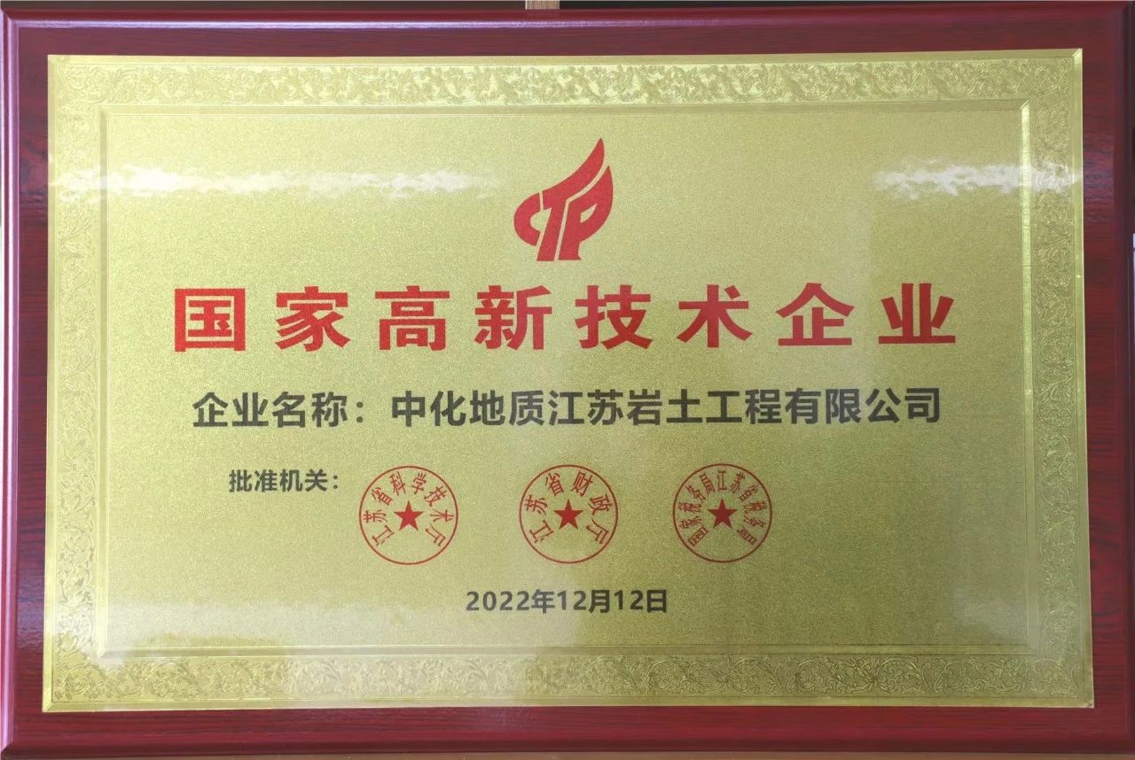 中化地质江苏岩土工程有限公司顺利通过江苏省科学技术厅、江苏省财政厅、税务总局江苏省税务局等部门的联合评审验收,被正式认定为“高新技术企业”。