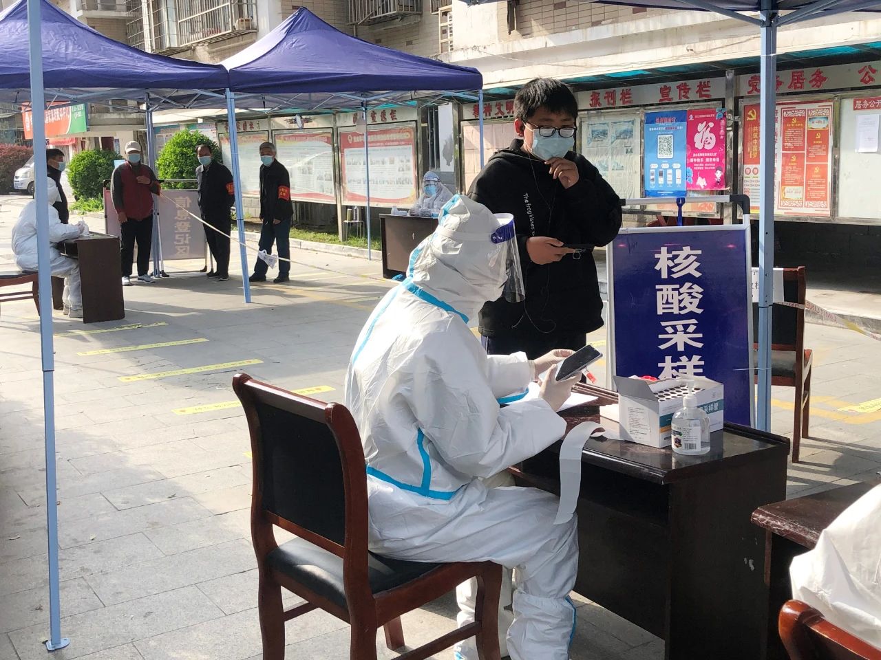 公司(院)团委书记赵鑫正在进行核酸检测登记工作