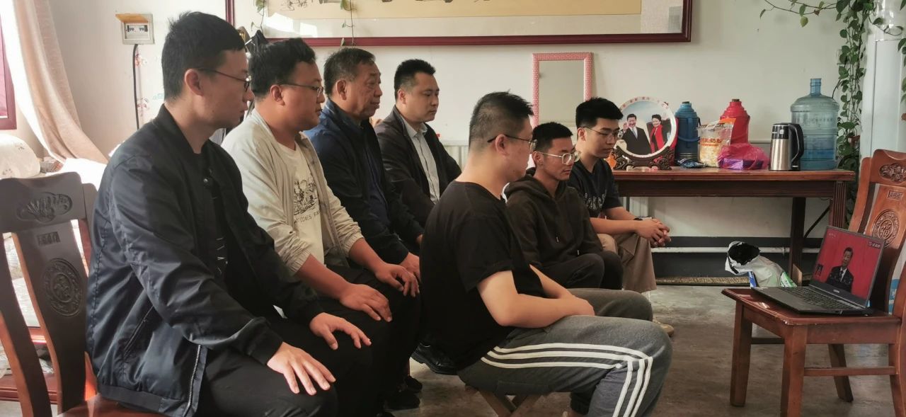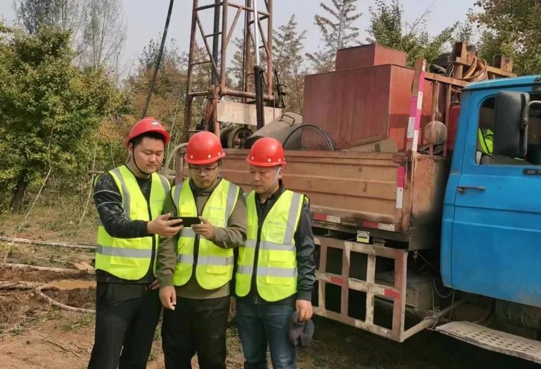 党委书记、院长黄文院及项目技术人员在山东临沂市费县石井镇建筑石料矿勘查项目地观看二十大开幕会