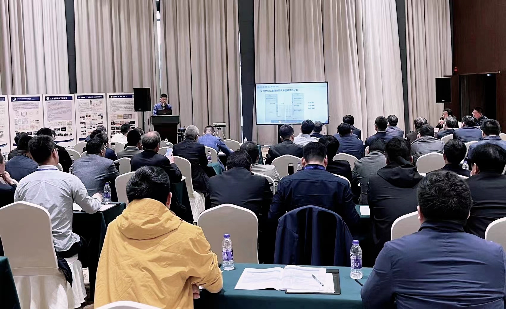 林克昌同志阐释了渗透破坏的概念、现象及破坏后果,结合渗透破坏产生的力学机理、空间位置和南京长江漫滩场地的工程(水文)地质条件对南京长江漫滩场地上的深基坑工程渗透破坏类型进行了科学归纳和总结,并以某临江超深基坑工程侧壁渗漏事故为例详细解释了事故产生的原因及处治措施。报告对富水砂层地下水不利作用的防治具有一定的指导意义。